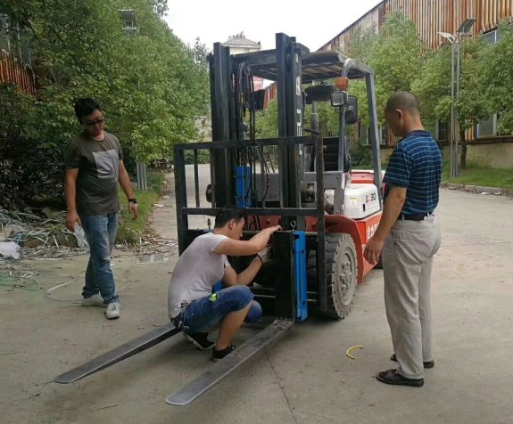 左右貨叉各別裝掛在左右組的模塊上。安裝本產品后的叉車的貨叉,依然能保留其左右側移的功能,以便調整其寬度以及仍然能安裝各種叉車的屬具,如夾抱器和旋轉器等等。