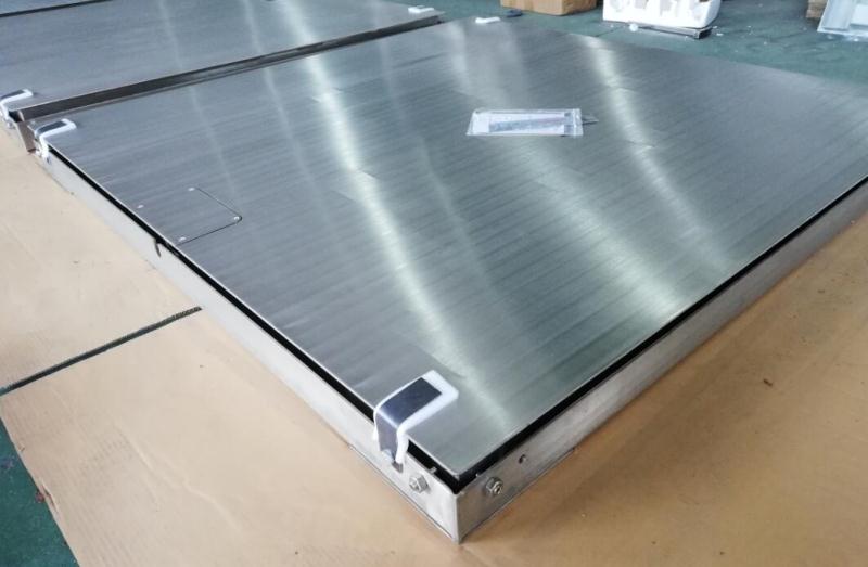 秤體為全Q235碳鋼結構組成、秤體雙層設計、具有外框保護,具有自動限位、自動復位等功能,其設計應結構合理,有足夠強度和剛度,便于維修;秤臺經過預拱處理(有微小的弧度),雨天保證秤臺不積水;要求自動埋弧焊接,結構好、剛度好、強度高、抗扭和抗側向力能力強;秤臺剛度f優(yōu)于1/1200